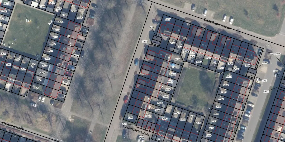 Dadelklaverstraat 38 is gelegen op kadastraal perceel AMR04O2651. Deze kadastrale aanduiding is uniek en wordt gebruikt door het Kadaster om eigendomsrechten en andere zakelijke rechten vast te leggen. Het perceel maakt onderdeel uit van de kadastrale gemeente Almere.