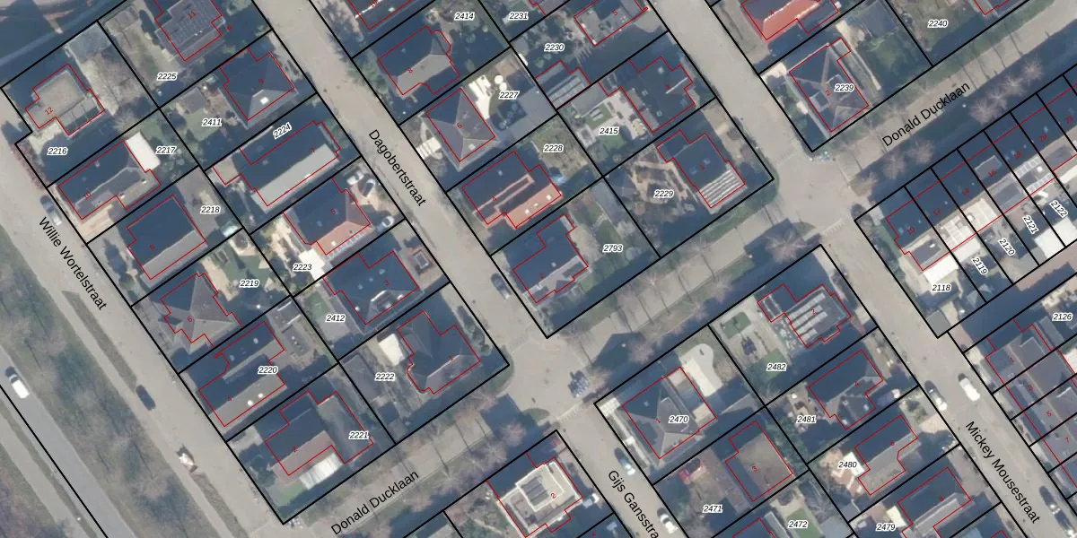 Gebruik de zoekbalk of klik op een perceel voor informatie over de adressen binnen dit perceel.