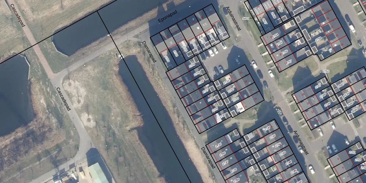 Het perceel waarop Damarapad 9 staat heeft een oppervlakte van 104 m². Dit is een middelgroot perceel. De perceeloppervlakte wordt geregistreerd door het Kadaster. Gedetailleerde informatie over de maten van dit perceel kunt u vinden in het rapport Kadastrale kaart met maatvoering van Damarapad 9.