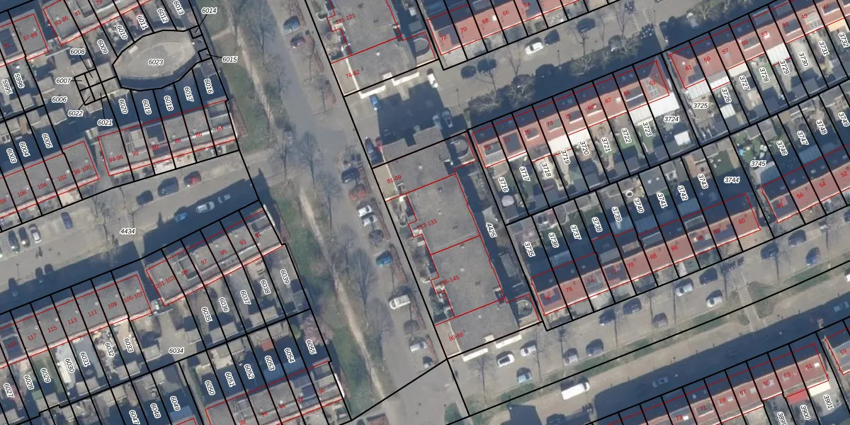 Het adres is gelegen op perceel 4425 in de sectie U en de kadastrale gemeente Almere. De kadastrale aanduiding is aldus AMR04-U-4425. Het perceel is kleiner dan gemiddeld in Almere. Het perceel is 1168 m² groot, terwijl het gemiddelde ligt op 3329,36 m². De grootste perceeloppervlakte in de kadastrale gemeente is 32,12 km². De kleinste oppervlakte bedraagt 0 m². Er zijn 22 adressen aanwezig op het perceel. In de Basisregistratie Kadaster (BRK) werden de grenzen van het perceel geregistreerd op 28-06-1999.