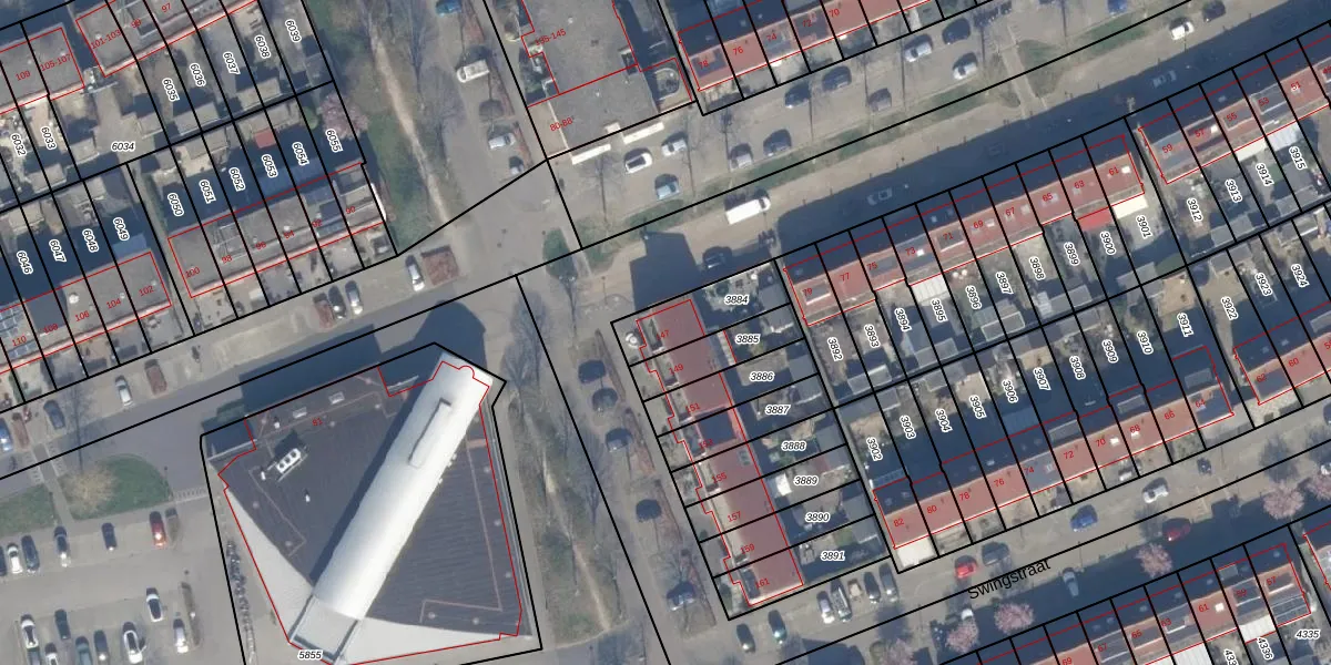 Gebruik de zoekbalk of klik op een perceel voor informatie over de adressen binnen dit perceel.