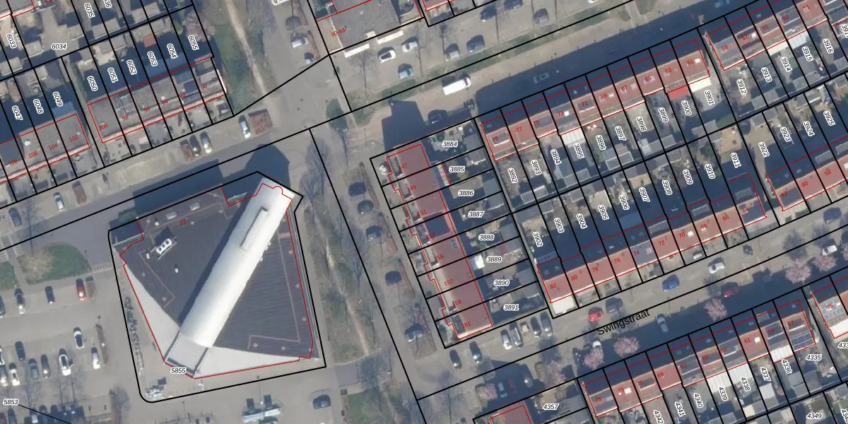 Gebruik de zoekbalk of klik op een perceel voor informatie over de adressen binnen dit perceel.