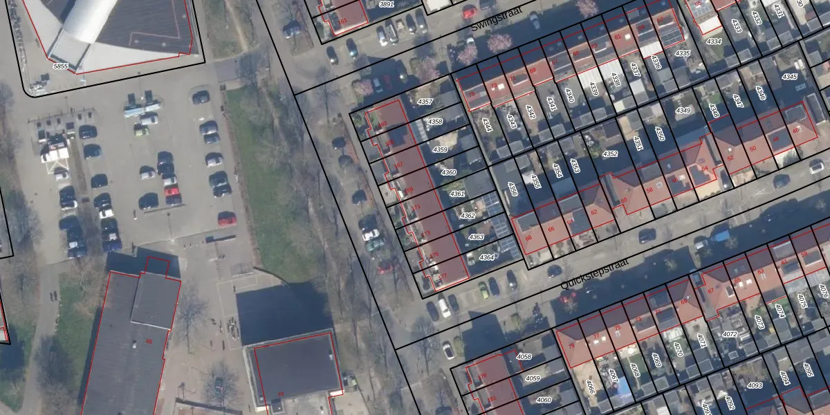 Gebruik de zoekbalk of klik op een perceel voor informatie over de adressen binnen dit perceel.