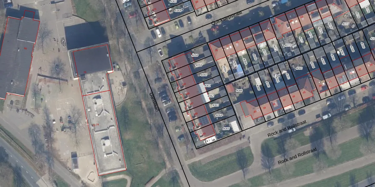 Gebruik de zoekbalk of klik op een perceel voor informatie over de adressen binnen dit perceel.
