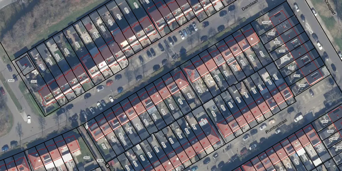 Het perceel waarop Danslaan 19 staat heeft een oppervlakte van 150 m². Dit is een middelgroot perceel. De perceeloppervlakte wordt geregistreerd door het Kadaster. Gedetailleerde informatie over de maten van dit perceel kunt u vinden in het rapport Kadastrale kaart met maatvoering van Danslaan 19.