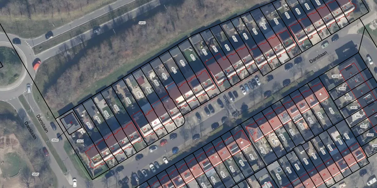 Het perceel waarop Danslaan 34 staat heeft een oppervlakte van 196 m². Dit is een middelgroot perceel. De perceeloppervlakte wordt geregistreerd door het Kadaster. Gedetailleerde informatie over de maten van dit perceel kunt u vinden in het rapport Kadastrale kaart met maatvoering van Danslaan 34.