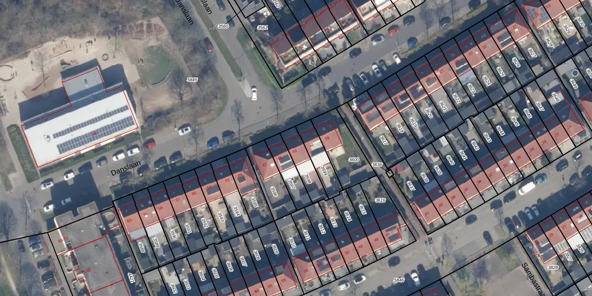 Gebruik de zoekbalk of klik op een perceel voor informatie over de adressen binnen dit perceel.