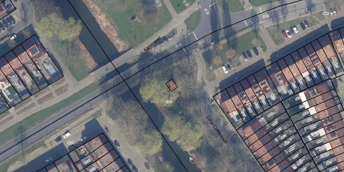 Het adres is gelegen op perceel 4765 in de sectie U en de kadastrale gemeente Almere. De kadastrale aanduiding is aldus AMR04-U-4765. De gemiddelde perceelgrootte in Almere is 3327,62 m². Dit perceel is kleiner: de perceeloppervlakte bedraagt 26 m². De grootste perceeloppervlakte in de kadastrale gemeente is 32,12 km². De kleinste oppervlakte bedraagt 0 m². Op het perceel bevinden zich geen andere adressen. De huidige grenzen van het perceel zijn digitaal in de Basisregistratie Kadaster (BRK) geregistreerd op 26-06-1998.