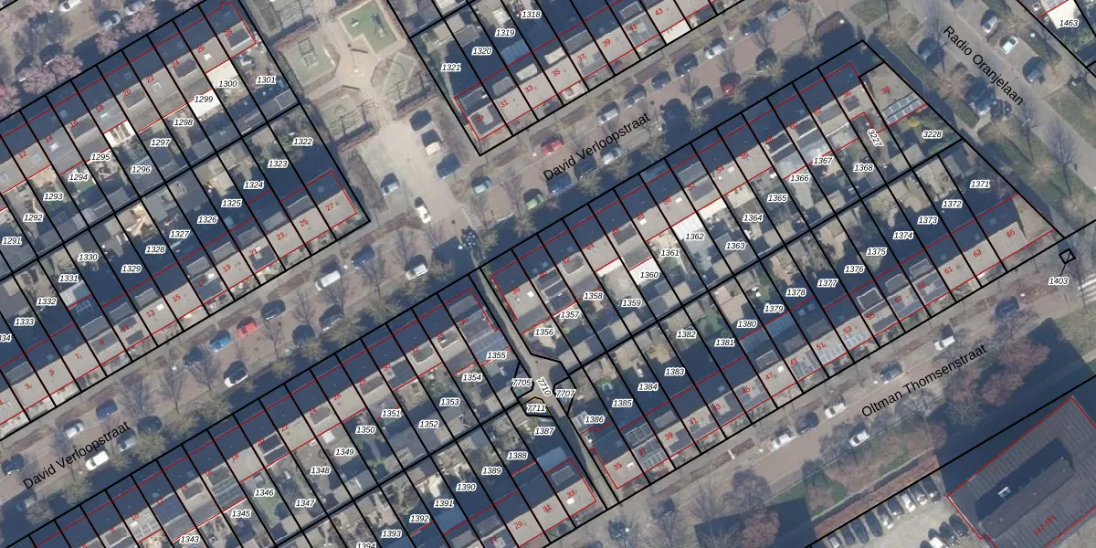 Gebruik de zoekbalk of klik op een perceel voor informatie over de adressen binnen dit perceel.