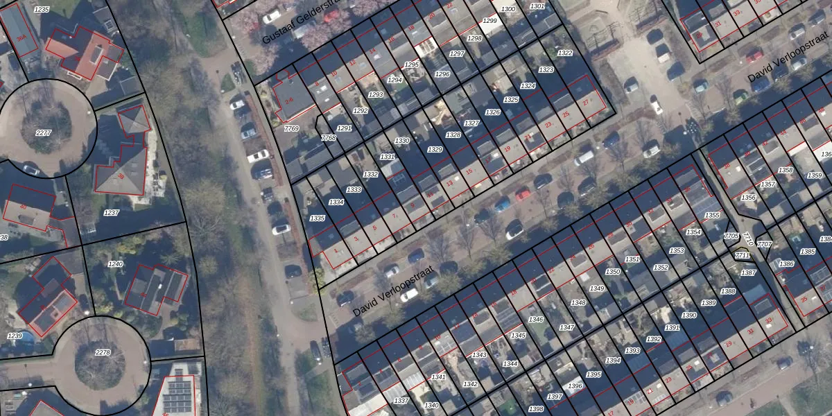 Gebruik de zoekbalk of klik op een perceel voor informatie over de adressen binnen dit perceel.