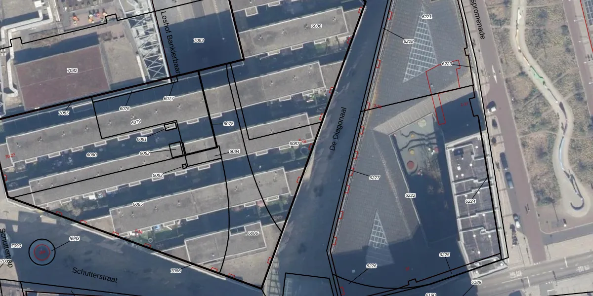 Het perceel waarop De Diagonaal 12 staat heeft een oppervlakte van 530 m². Dit is een groot perceel. De perceeloppervlakte wordt geregistreerd door het Kadaster. Gedetailleerde informatie over de maten van dit perceel kunt u vinden in het rapport Kadastrale kaart met maatvoering van De Diagonaal 12.