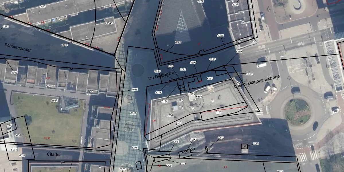 Het perceel waarop De Diagonaal 129 staat heeft een oppervlakte van 1046 m². Dit is een zeer groot perceel. De perceeloppervlakte wordt geregistreerd door het Kadaster. Gedetailleerde informatie over de maten van dit perceel kunt u vinden in het rapport Kadastrale kaart met maatvoering van De Diagonaal 129.