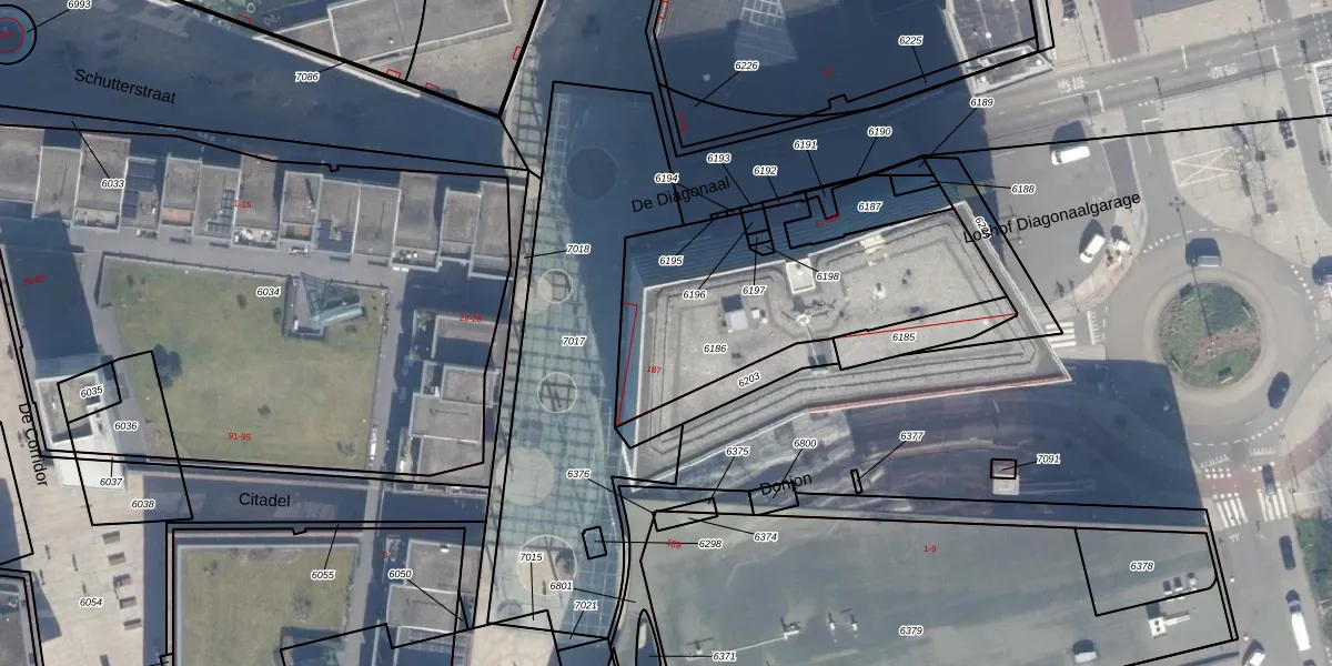 Het perceel waarop De Diagonaal 145 staat heeft een oppervlakte van 1046 m². Dit is een zeer groot perceel. De perceeloppervlakte wordt geregistreerd door het Kadaster. Gedetailleerde informatie over de maten van dit perceel kunt u vinden in het rapport Kadastrale kaart met maatvoering van De Diagonaal 145.
