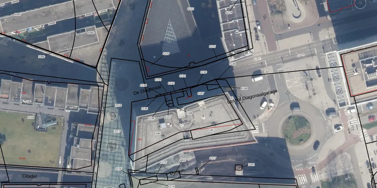 Het perceel waarop De Diagonaal 41 staat heeft een oppervlakte van 13 m². Dit is een klein perceel. De perceeloppervlakte wordt geregistreerd door het Kadaster. Gedetailleerde informatie over de maten van dit perceel kunt u vinden in het rapport Kadastrale kaart met maatvoering van De Diagonaal 41.