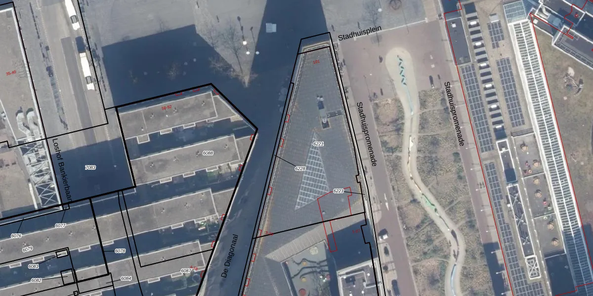 Het perceel waarop De Diagonaal 5 staat heeft een oppervlakte van 1397 m². Dit is een zeer groot perceel. De perceeloppervlakte wordt geregistreerd door het Kadaster. Gedetailleerde informatie over de maten van dit perceel kunt u vinden in het rapport Kadastrale kaart met maatvoering van De Diagonaal 5.