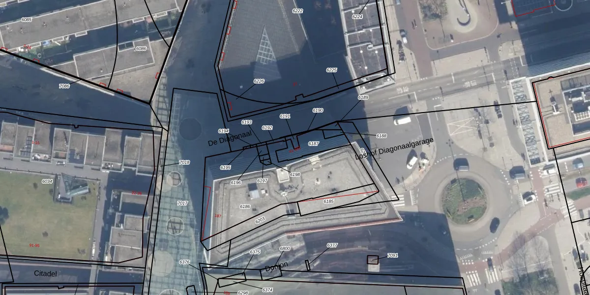 Het perceel waarop De Diagonaal 59 staat heeft een oppervlakte van 13 m². Dit is een klein perceel. De perceeloppervlakte wordt geregistreerd door het Kadaster. Gedetailleerde informatie over de maten van dit perceel kunt u vinden in het rapport Kadastrale kaart met maatvoering van De Diagonaal 59.