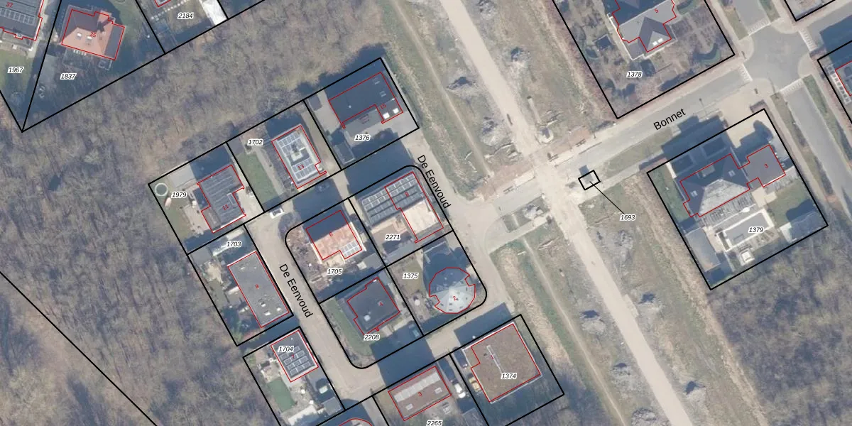 Gebruik de zoekbalk of klik op een perceel voor informatie over de adressen binnen dit perceel.