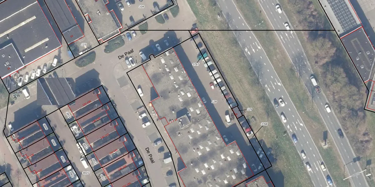 Het perceel waarop De Paal 7-12 staat heeft een oppervlakte van 3387 m². Dit is een zeer groot perceel. De perceeloppervlakte wordt geregistreerd door het Kadaster. Gedetailleerde informatie over de maten van dit perceel kunt u vinden in het rapport Kadastrale kaart met maatvoering van De Paal 7-12.