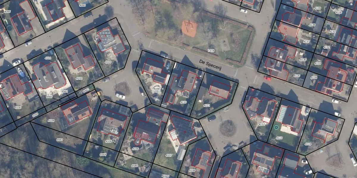 Het perceel waarop De Specerij 23 staat heeft een oppervlakte van 469 m². Dit is een groot perceel. De perceeloppervlakte wordt geregistreerd door het Kadaster. Gedetailleerde informatie over de maten van dit perceel kunt u vinden in het rapport Kadastrale kaart met maatvoering van De Specerij 23.