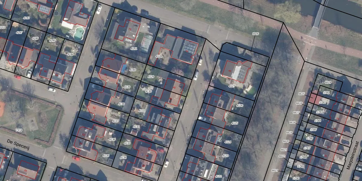 Het perceel waarop De Specerij 45 staat heeft een oppervlakte van 265 m². Dit is een middelgroot perceel. De perceeloppervlakte wordt geregistreerd door het Kadaster. Gedetailleerde informatie over de maten van dit perceel kunt u vinden in het rapport Kadastrale kaart met maatvoering van De Specerij 45.