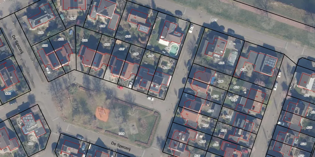 Het perceel waarop De Specerij 59 staat heeft een oppervlakte van 305 m². Dit is een groot perceel. De perceeloppervlakte wordt geregistreerd door het Kadaster. Gedetailleerde informatie over de maten van dit perceel kunt u vinden in het rapport Kadastrale kaart met maatvoering van De Specerij 59.