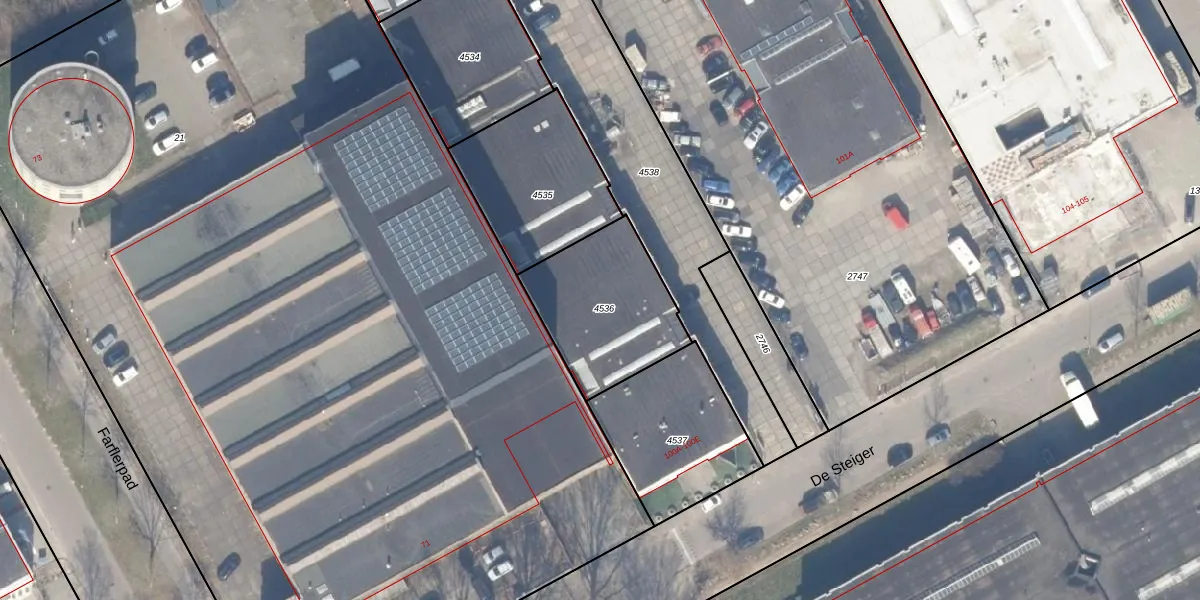 Het perceel waarop De Steiger 100-B staat heeft een oppervlakte van 495 m². Dit is een groot perceel. De perceeloppervlakte wordt geregistreerd door het Kadaster. Gedetailleerde informatie over de maten van dit perceel kunt u vinden in het rapport Kadastrale kaart met maatvoering van De Steiger 100-B.