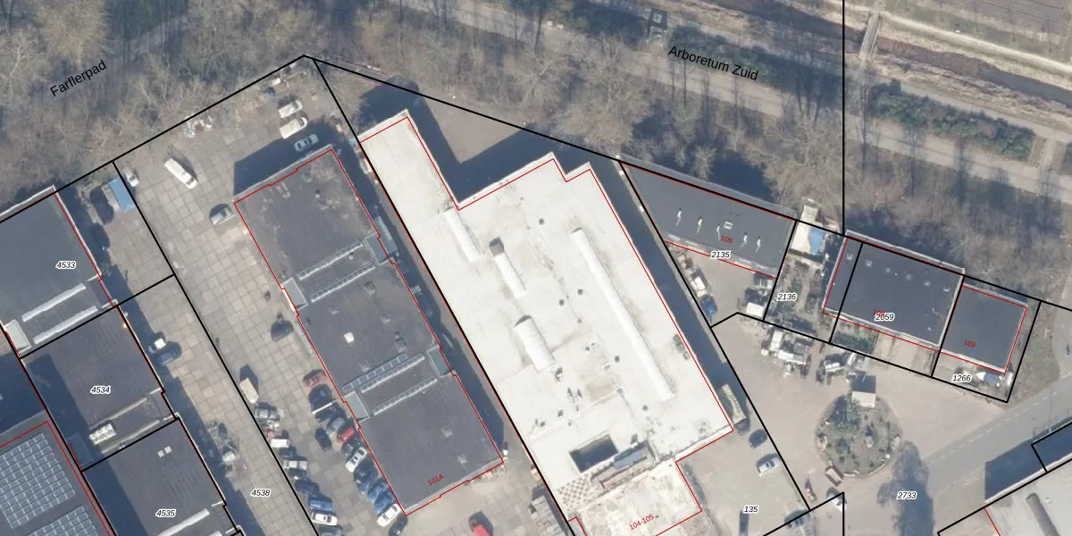 Het perceel waarop De Steiger 105 staat heeft een oppervlakte van 3957 m². Dit is een zeer groot perceel. De perceeloppervlakte wordt geregistreerd door het Kadaster. Gedetailleerde informatie over de maten van dit perceel kunt u vinden in het rapport Kadastrale kaart met maatvoering van De Steiger 105.