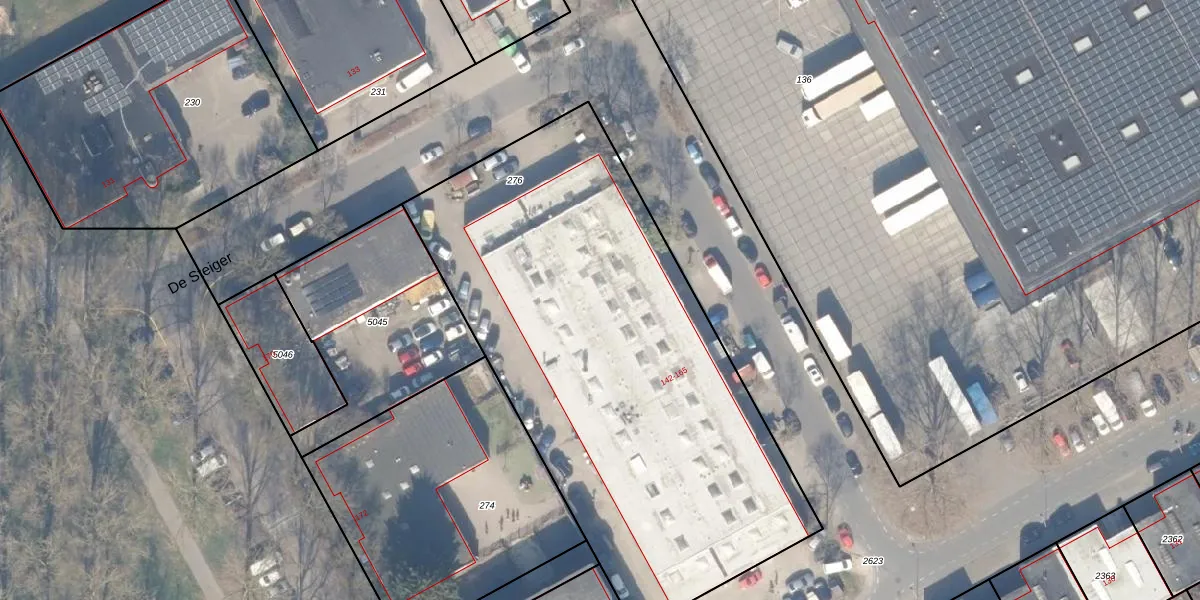 Het perceel waarop De Steiger 148 staat heeft een oppervlakte van 2885 m². Dit is een zeer groot perceel. De perceeloppervlakte wordt geregistreerd door het Kadaster. Gedetailleerde informatie over de maten van dit perceel kunt u vinden in het rapport Kadastrale kaart met maatvoering van De Steiger 148.