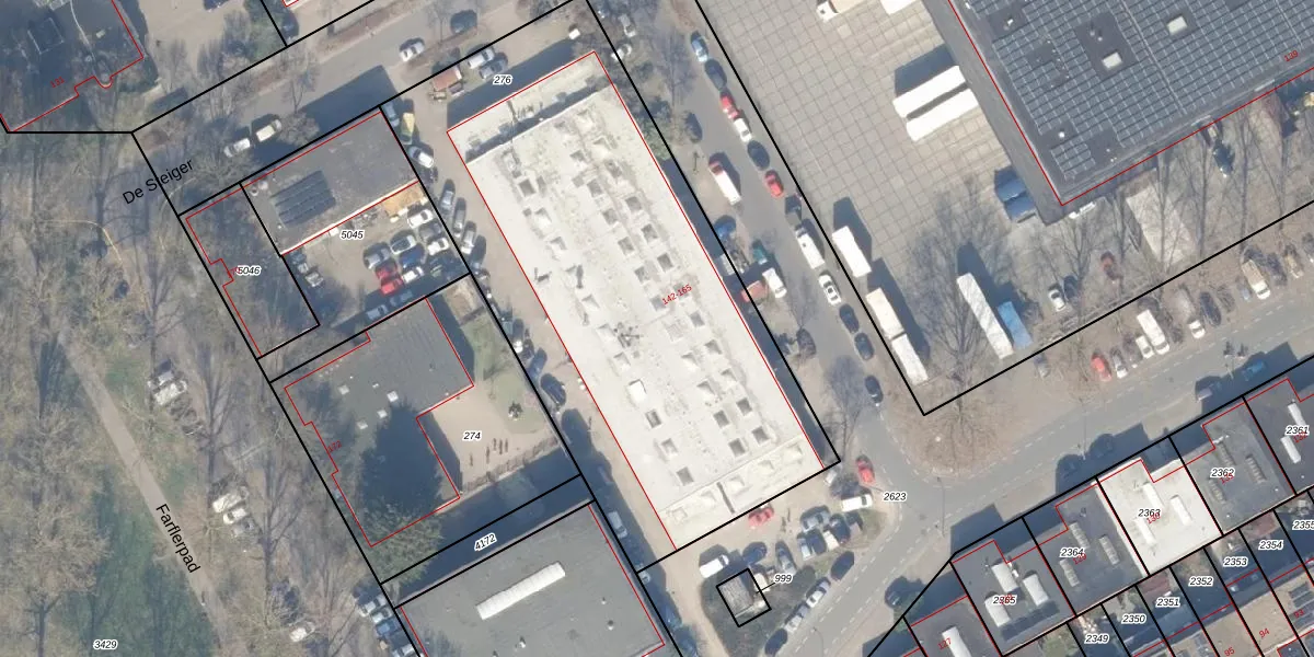 Het perceel waarop De Steiger 150 staat heeft een oppervlakte van 2885 m². Dit is een zeer groot perceel. De perceeloppervlakte wordt geregistreerd door het Kadaster. Gedetailleerde informatie over de maten van dit perceel kunt u vinden in het rapport Kadastrale kaart met maatvoering van De Steiger 150.