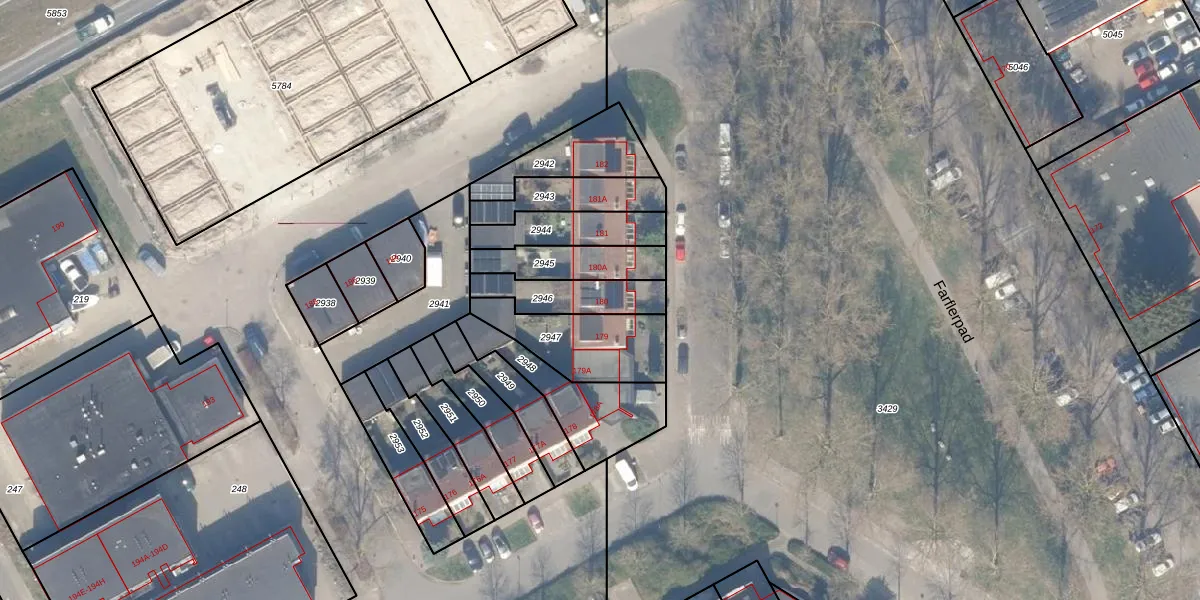 Het perceel waarop De Steiger 180 staat heeft een oppervlakte van 174 m². Dit is een middelgroot perceel. De perceeloppervlakte wordt geregistreerd door het Kadaster. Gedetailleerde informatie over de maten van dit perceel kunt u vinden in het rapport Kadastrale kaart met maatvoering van De Steiger 180.