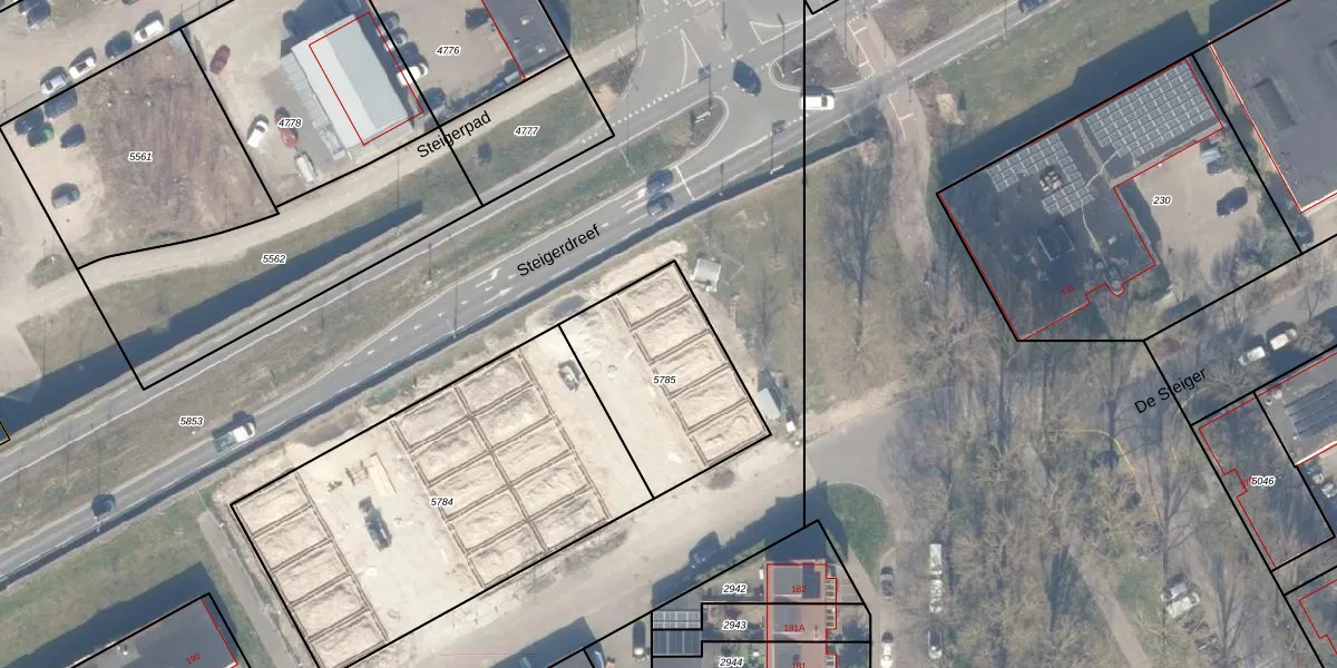 Het perceel waarop De Steiger 183-B staat heeft een oppervlakte van 594 m². Dit is een groot perceel. De perceeloppervlakte wordt geregistreerd door het Kadaster. Gedetailleerde informatie over de maten van dit perceel kunt u vinden in het rapport Kadastrale kaart met maatvoering van De Steiger 183-B.