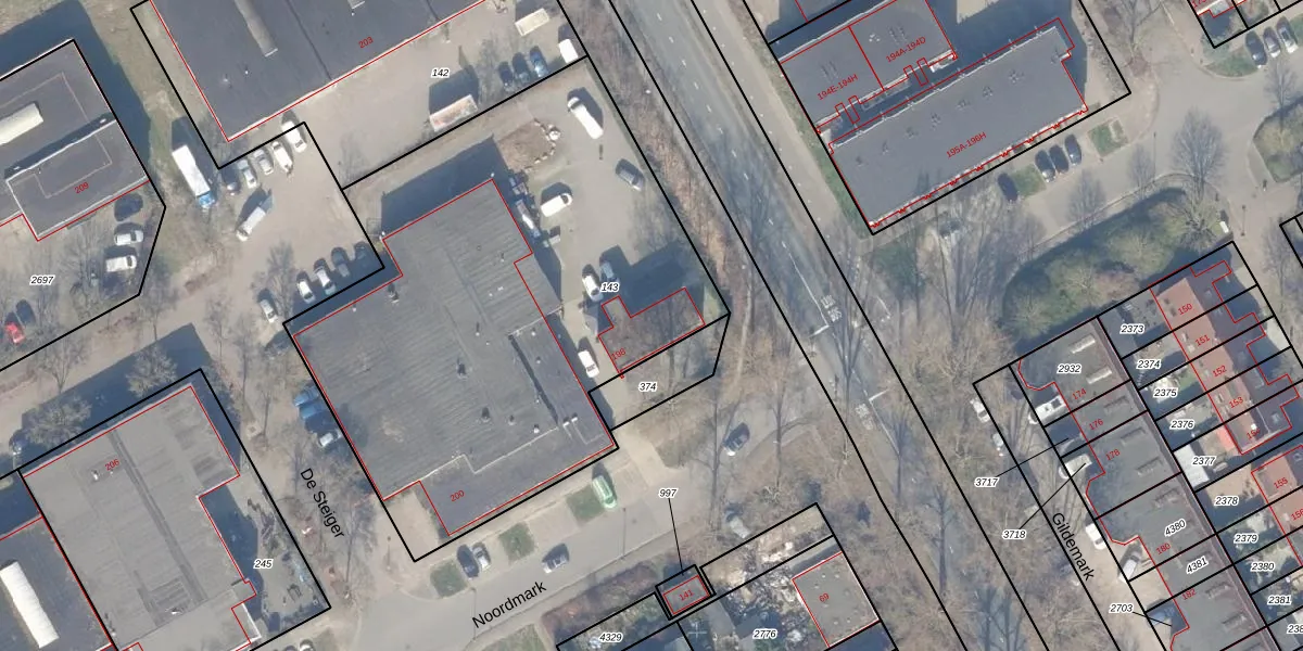 Het perceel waarop De Steiger 198 staat heeft een oppervlakte van 2885 m². Dit is een zeer groot perceel. De perceeloppervlakte wordt geregistreerd door het Kadaster. Gedetailleerde informatie over de maten van dit perceel kunt u vinden in het rapport Kadastrale kaart met maatvoering van De Steiger 198.