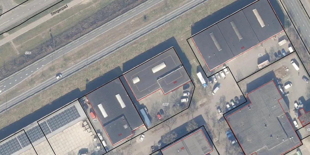 Het perceel waarop De Steiger 209 staat heeft een oppervlakte van 1516 m². Dit is een zeer groot perceel. De perceeloppervlakte wordt geregistreerd door het Kadaster. Gedetailleerde informatie over de maten van dit perceel kunt u vinden in het rapport Kadastrale kaart met maatvoering van De Steiger 209.
