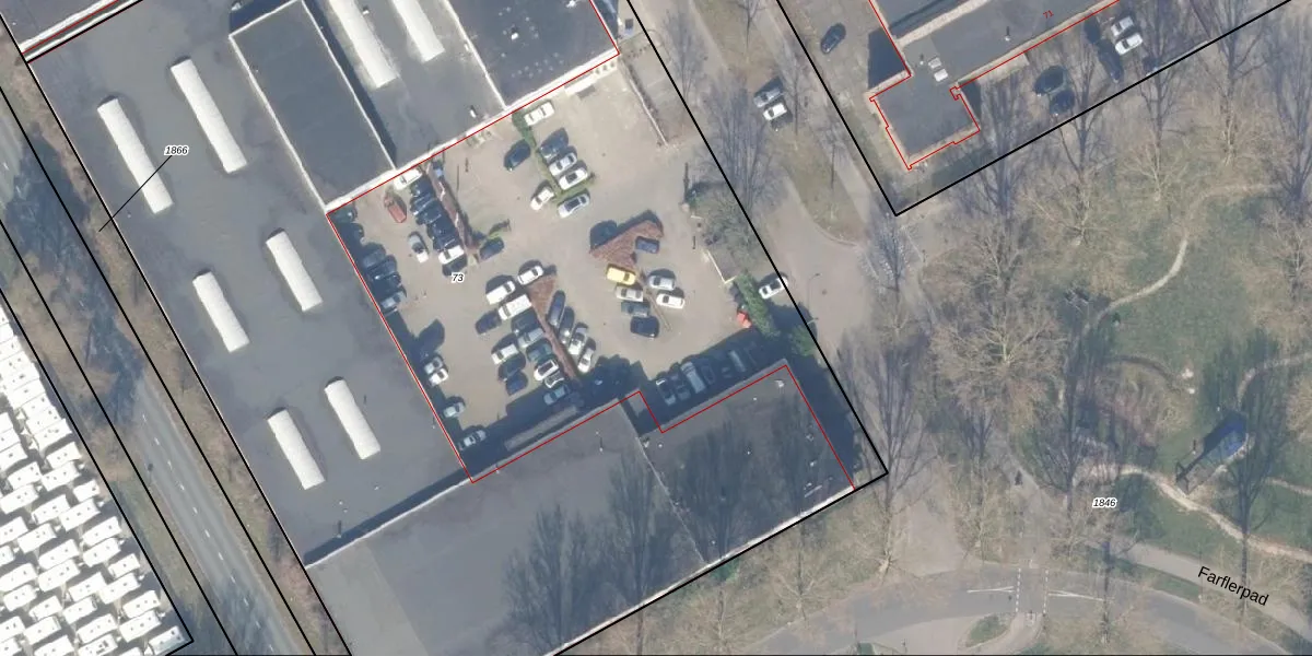 Het adres is gelegen op perceel 73 in de sectie G en de kadastrale gemeente Almere. De kadastrale aanduiding is aldus AMR04-G-73. De oppervlakte van het perceel is 1,0 ha. Dat is groter dan gemiddeld in Almere, waar de gemiddelde perceeloppervlakte op 3328,91 m² ligt. De grootste perceeloppervlakte in de kadastrale gemeente is 32,12 km². De kleinste oppervlakte bedraagt 0 m². Op het perceel zijn 159 adressen aanwezig. De huidige grenzen van het perceel zijn digitaal in de Basisregistratie Kadaster (BRK) geregistreerd op 25-08-2010.