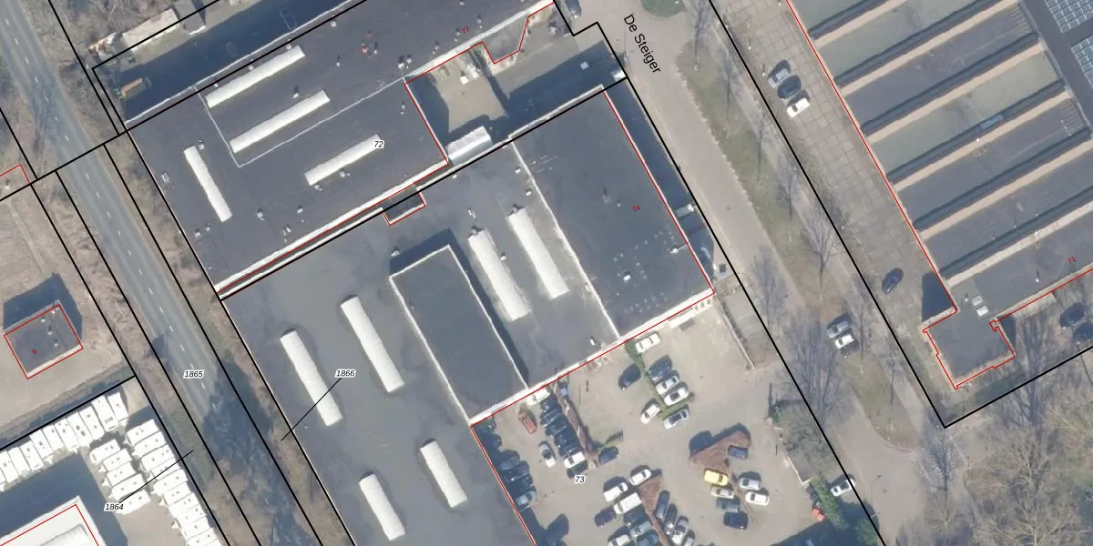 Het perceel waarop De Steiger 74-G-52 staat heeft een oppervlakte van 1,0 ha. Dit is een zeer groot perceel. De perceeloppervlakte wordt geregistreerd door het Kadaster. Gedetailleerde informatie over de maten van dit perceel kunt u vinden in het rapport Kadastrale kaart met maatvoering van De Steiger 74-G-52.
