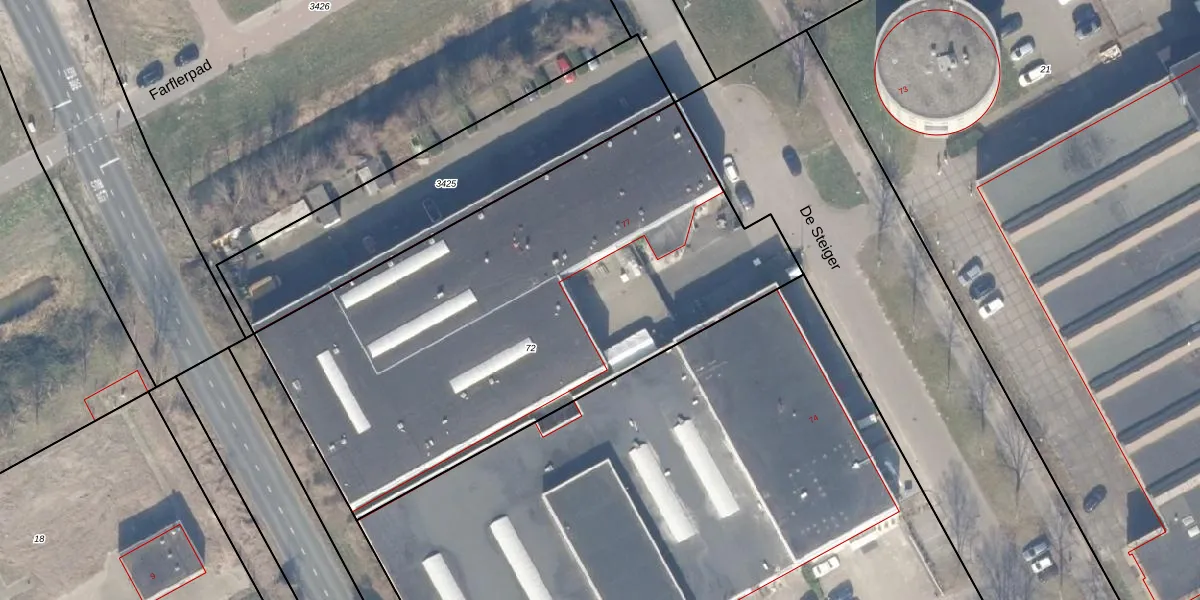 Het perceel waarop De Steiger 75-G-43 staat heeft een oppervlakte van 2896 m². Dit is een zeer groot perceel. De perceeloppervlakte wordt geregistreerd door het Kadaster. Gedetailleerde informatie over de maten van dit perceel kunt u vinden in het rapport Kadastrale kaart met maatvoering van De Steiger 75-G-43.