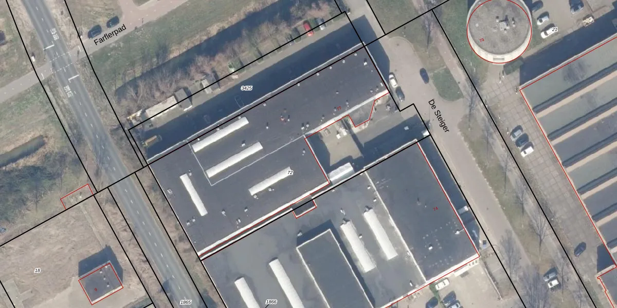 Het perceel waarop De Steiger 75-G-45 staat heeft een oppervlakte van 2896 m². Dit is een zeer groot perceel. De perceeloppervlakte wordt geregistreerd door het Kadaster. Gedetailleerde informatie over de maten van dit perceel kunt u vinden in het rapport Kadastrale kaart met maatvoering van De Steiger 75-G-45.