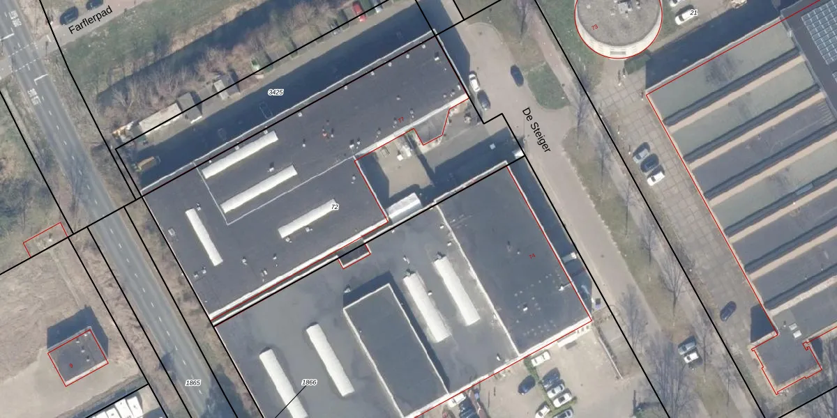 Het perceel waarop De Steiger 75-G-10 staat heeft een oppervlakte van 2896 m². Dit is een zeer groot perceel. De perceeloppervlakte wordt geregistreerd door het Kadaster. Gedetailleerde informatie over de maten van dit perceel kunt u vinden in het rapport Kadastrale kaart met maatvoering van De Steiger 75-G-10.