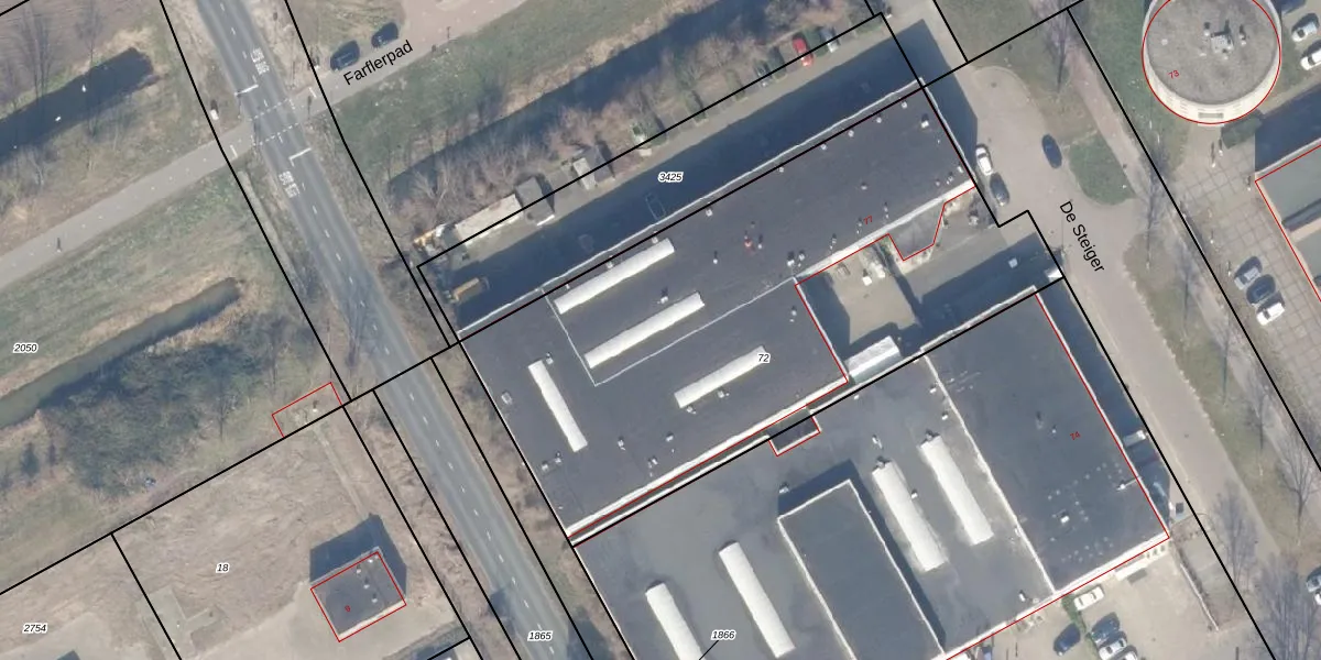 Het perceel waarop De Steiger 75-G-46 staat heeft een oppervlakte van 2896 m². Dit is een zeer groot perceel. De perceeloppervlakte wordt geregistreerd door het Kadaster. Gedetailleerde informatie over de maten van dit perceel kunt u vinden in het rapport Kadastrale kaart met maatvoering van De Steiger 75-G-46.