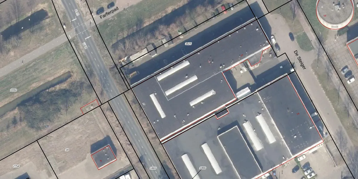 Het perceel waarop De Steiger 75-G-48 staat heeft een oppervlakte van 2896 m². Dit is een zeer groot perceel. De perceeloppervlakte wordt geregistreerd door het Kadaster. Gedetailleerde informatie over de maten van dit perceel kunt u vinden in het rapport Kadastrale kaart met maatvoering van De Steiger 75-G-48.