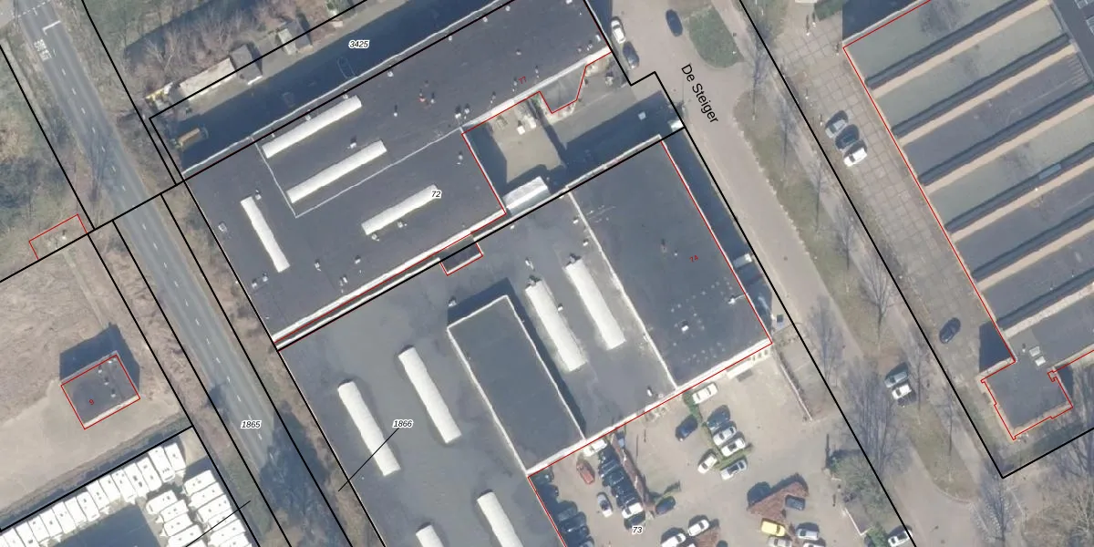 Het perceel waarop De Steiger 75-G-73 staat heeft een oppervlakte van 1,0 ha. Dit is een zeer groot perceel. De perceeloppervlakte wordt geregistreerd door het Kadaster. Gedetailleerde informatie over de maten van dit perceel kunt u vinden in het rapport Kadastrale kaart met maatvoering van De Steiger 75-G-73.