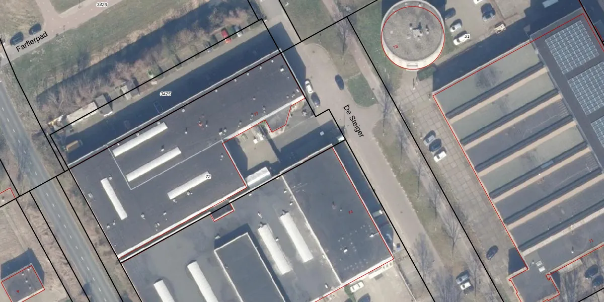 Het perceel waarop De Steiger 75-G-93 staat heeft een oppervlakte van 2896 m². Dit is een zeer groot perceel. De perceeloppervlakte wordt geregistreerd door het Kadaster. Gedetailleerde informatie over de maten van dit perceel kunt u vinden in het rapport Kadastrale kaart met maatvoering van De Steiger 75-G-93.