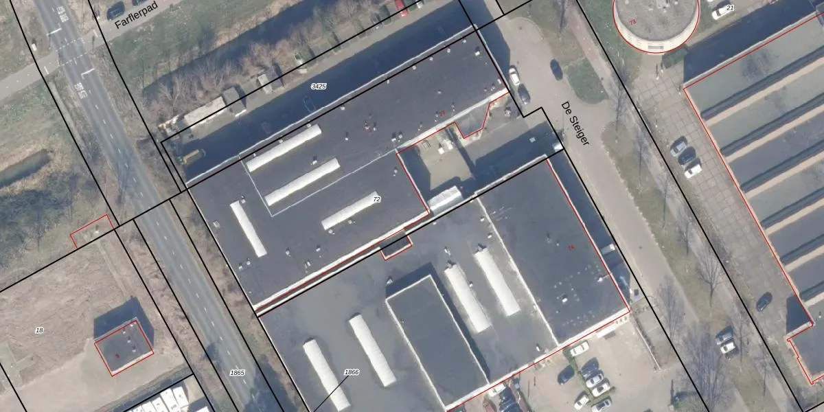 Het perceel waarop De Steiger 75-G-103 staat heeft een oppervlakte van 2896 m². Dit is een zeer groot perceel. De perceeloppervlakte wordt geregistreerd door het Kadaster. Gedetailleerde informatie over de maten van dit perceel kunt u vinden in het rapport Kadastrale kaart met maatvoering van De Steiger 75-G-103.