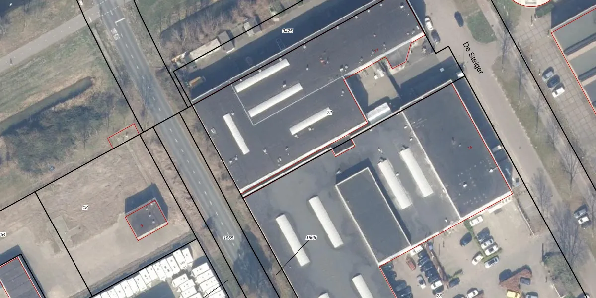 Het perceel waarop De Steiger 75-G-113 staat heeft een oppervlakte van 2896 m². Dit is een zeer groot perceel. De perceeloppervlakte wordt geregistreerd door het Kadaster. Gedetailleerde informatie over de maten van dit perceel kunt u vinden in het rapport Kadastrale kaart met maatvoering van De Steiger 75-G-113.