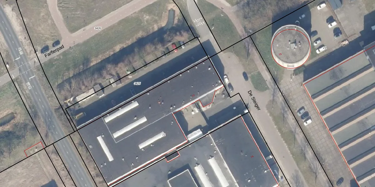 Het perceel waarop De Steiger 75-G-131 staat heeft een oppervlakte van 2896 m². Dit is een zeer groot perceel. De perceeloppervlakte wordt geregistreerd door het Kadaster. Gedetailleerde informatie over de maten van dit perceel kunt u vinden in het rapport Kadastrale kaart met maatvoering van De Steiger 75-G-131.