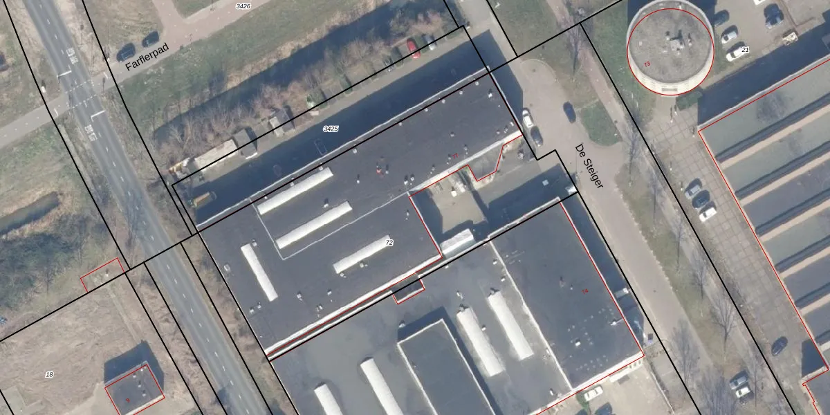 Het perceel waarop De Steiger 75-G-104 staat heeft een oppervlakte van 2896 m². Dit is een zeer groot perceel. De perceeloppervlakte wordt geregistreerd door het Kadaster. Gedetailleerde informatie over de maten van dit perceel kunt u vinden in het rapport Kadastrale kaart met maatvoering van De Steiger 75-G-104.