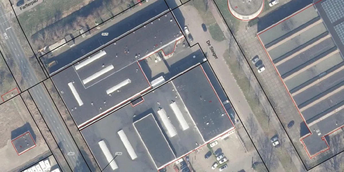 Het perceel waarop De Steiger 75-G-163 staat heeft een oppervlakte van 1,0 ha. Dit is een zeer groot perceel. De perceeloppervlakte wordt geregistreerd door het Kadaster. Gedetailleerde informatie over de maten van dit perceel kunt u vinden in het rapport Kadastrale kaart met maatvoering van De Steiger 75-G-163.