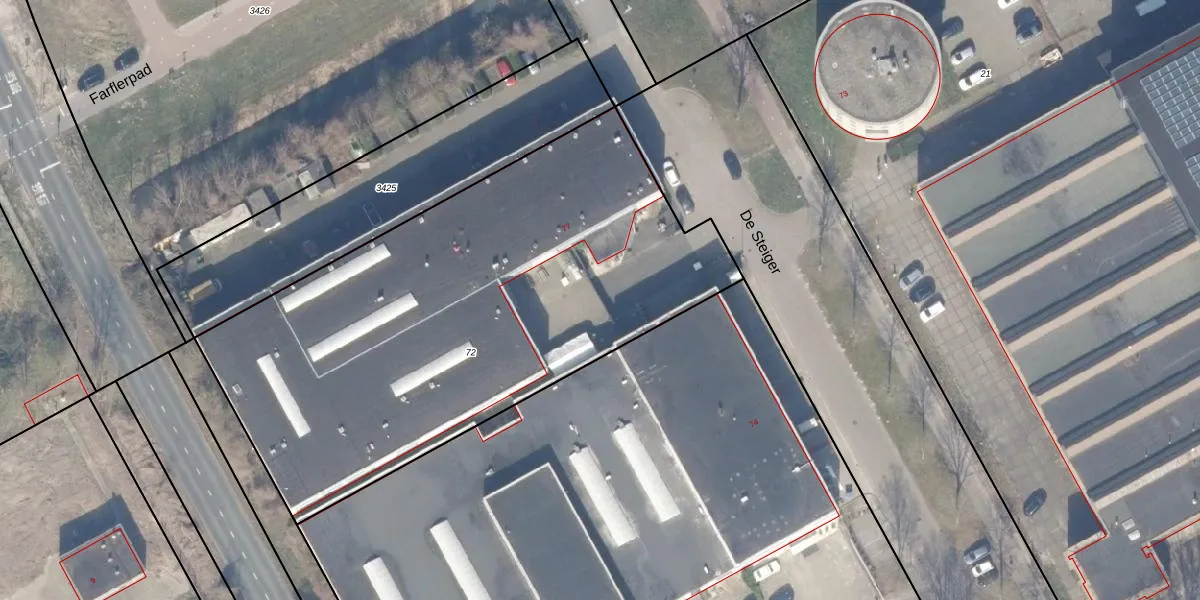 Het perceel waarop De Steiger 75-G-193 staat heeft een oppervlakte van 2896 m². Dit is een zeer groot perceel. De perceeloppervlakte wordt geregistreerd door het Kadaster. Gedetailleerde informatie over de maten van dit perceel kunt u vinden in het rapport Kadastrale kaart met maatvoering van De Steiger 75-G-193.