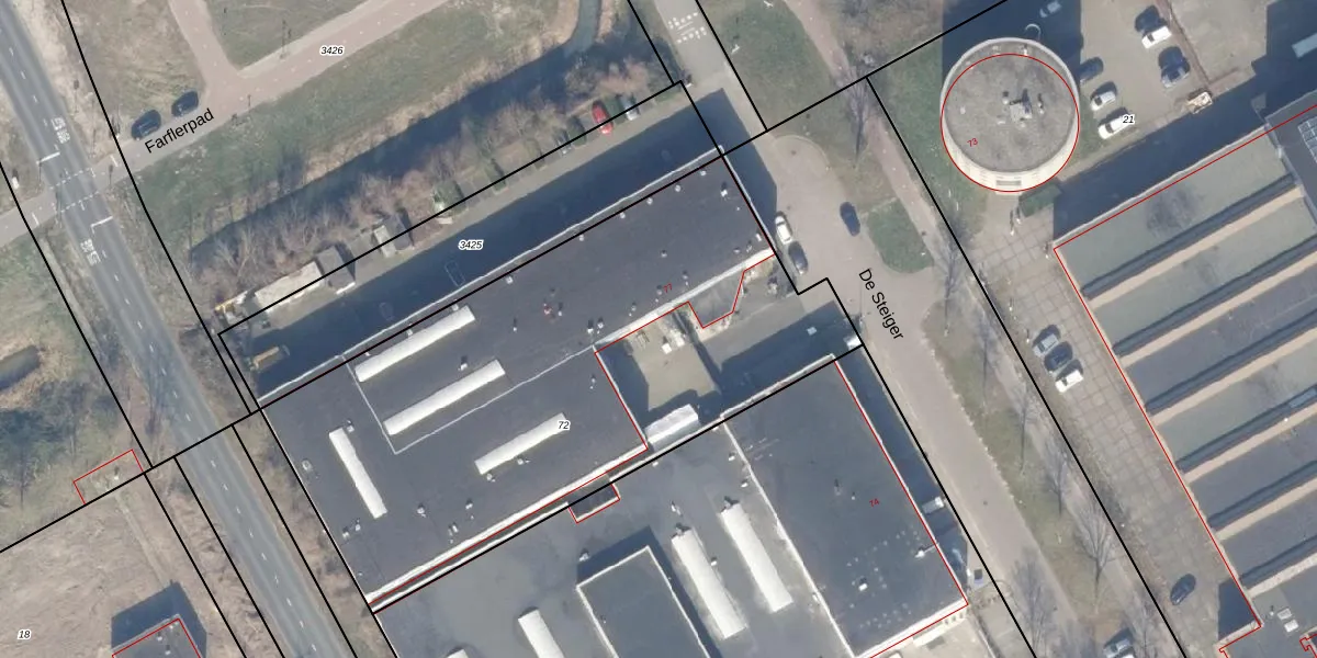 Het perceel waarop De Steiger 75-G-229 staat heeft een oppervlakte van 2896 m². Dit is een zeer groot perceel. De perceeloppervlakte wordt geregistreerd door het Kadaster. Gedetailleerde informatie over de maten van dit perceel kunt u vinden in het rapport Kadastrale kaart met maatvoering van De Steiger 75-G-229.
