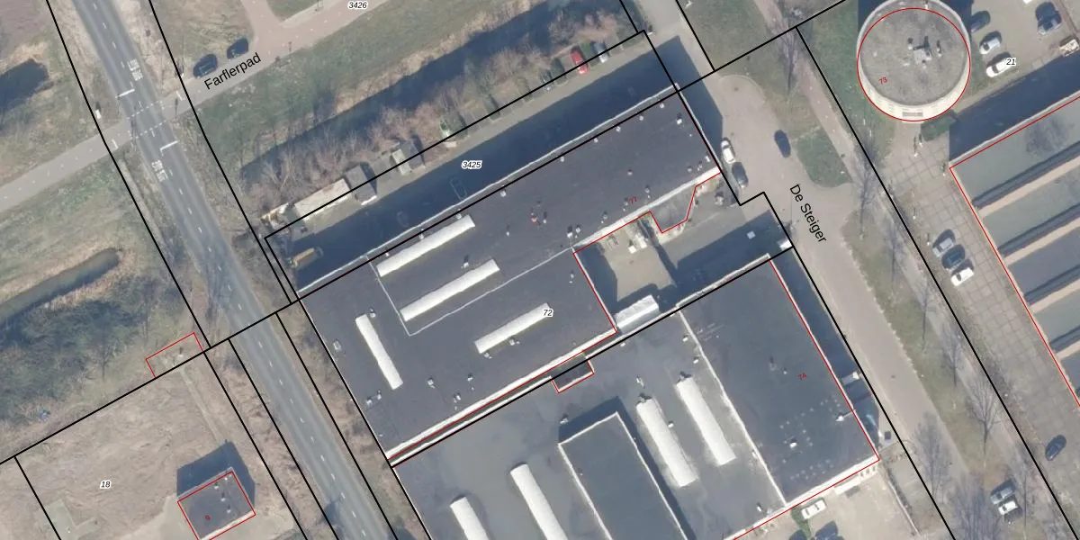 Het perceel waarop De Steiger 75-G-239 staat heeft een oppervlakte van 2896 m². Dit is een zeer groot perceel. De perceeloppervlakte wordt geregistreerd door het Kadaster. Gedetailleerde informatie over de maten van dit perceel kunt u vinden in het rapport Kadastrale kaart met maatvoering van De Steiger 75-G-239.